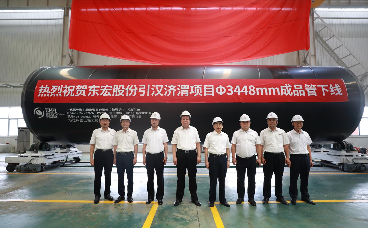 7月20日,公司引漢濟渭項目專用Φ3448mm成品管下線儀式在南廠區B5車間隆重舉行。董事長倪立營、黨建指導員趙勝,副總裁劉彬、孔智勇、劉勇、楊翠偉、樊鵬、薛春德及營銷序列、項目生產專班等相關人員出席儀式,活動由副總裁薛春德主持。