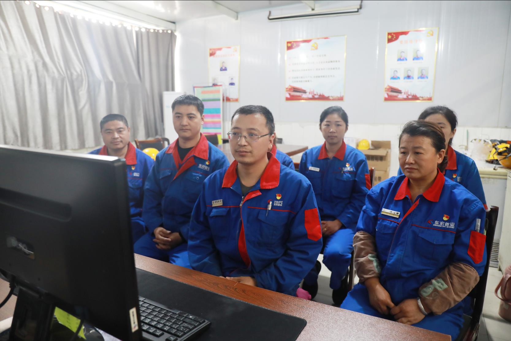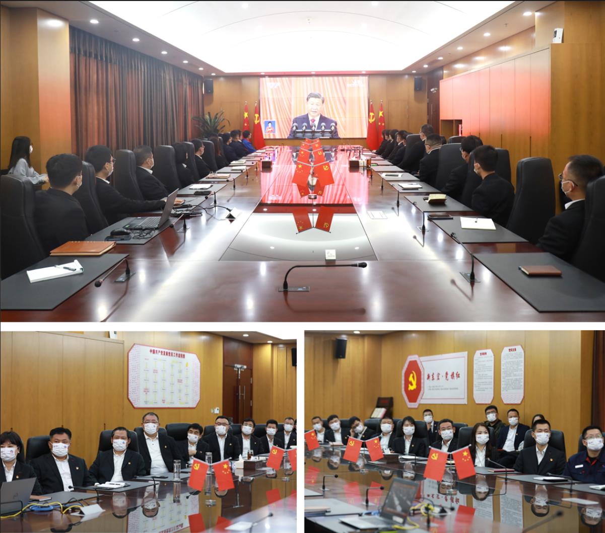 公司各部門(mén)員工分別在會(huì)議室、辦公室通過(guò)多種形式同步觀看。