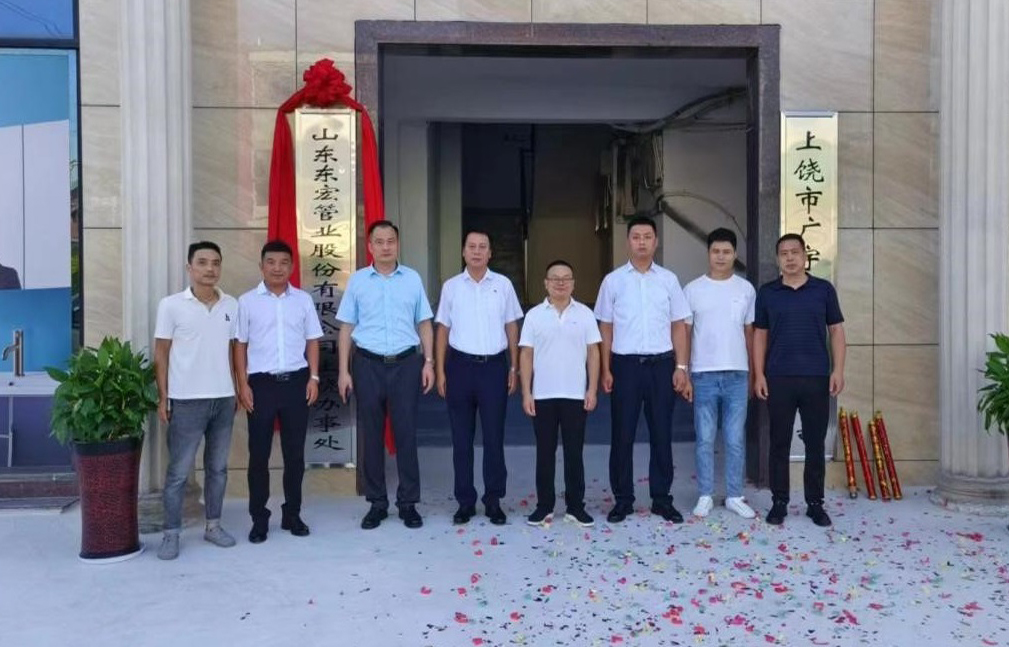 近日,公司江西省上饒辦事處正式成立。東宏集團(tuán)黨委副書記、東宏管業(yè)副總裁劉彬,安徽市場(chǎng)總經(jīng)理林丙海,上饒市廣宇實(shí)業(yè)有限公司總經(jīng)理周強(qiáng)云等人參加辦事處揭牌儀式。