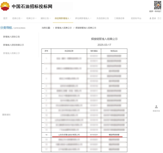 2025年3月,中國(guó)石油天然氣集團(tuán)有限公司(中石油)公布《焊接鋼管準(zhǔn)入結(jié)果公示》,山東東宏管業(yè)股份有限公司成功入選,標(biāo)志著公司在油氣管道領(lǐng)域獲得行業(yè)權(quán)威認(rèn)可。東宏股份聯(lián)合國(guó)內(nèi)外頂尖研究機(jī)構(gòu)與裝備巨頭,打造行業(yè)領(lǐng)先水平的全流程智能化油氣鋼管生產(chǎn)線,高度融合前沿技術(shù),自動(dòng)化、智能化、數(shù)字化程度極高。
