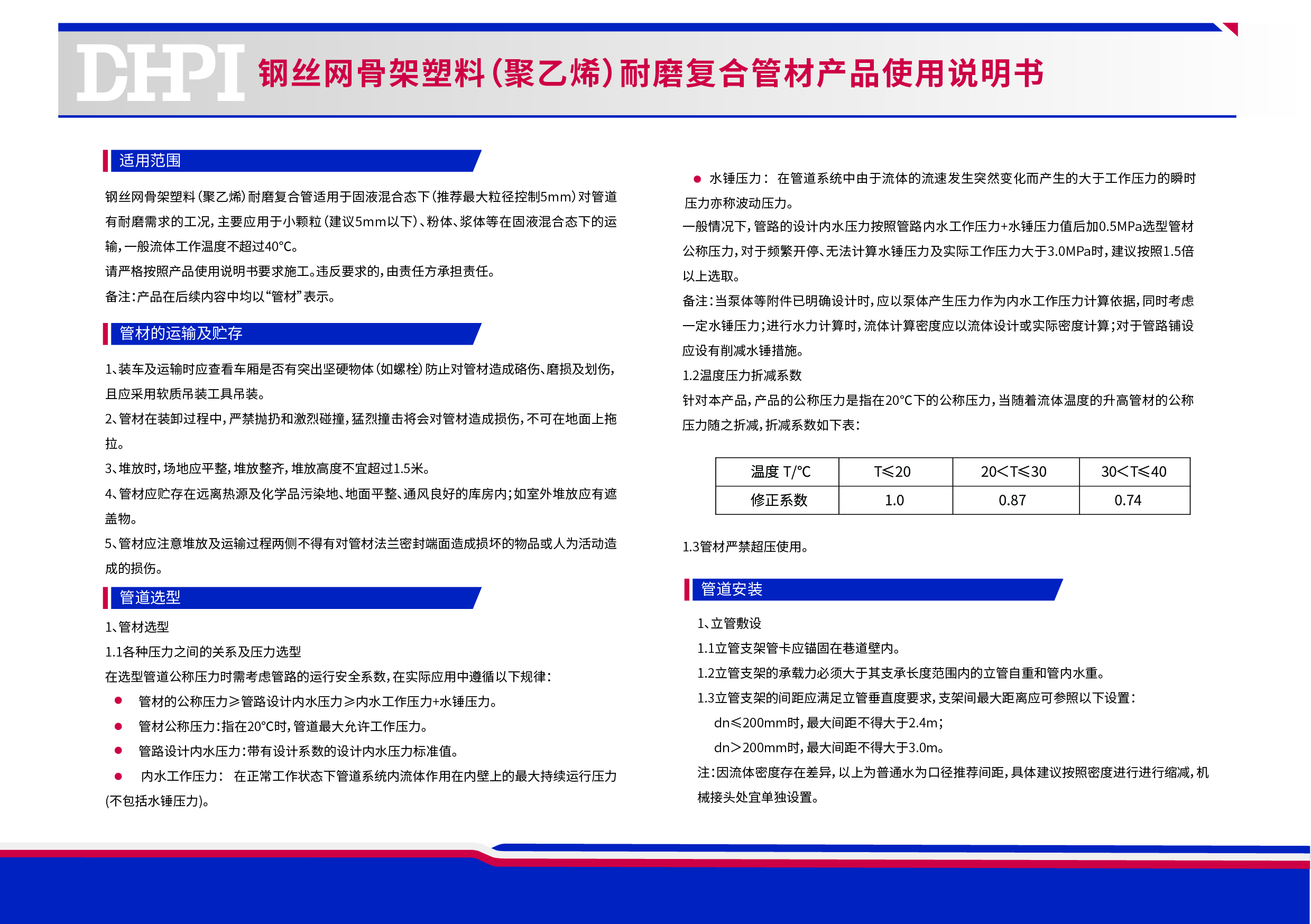 聚乙烯耐磨復合管材產品使用說明書