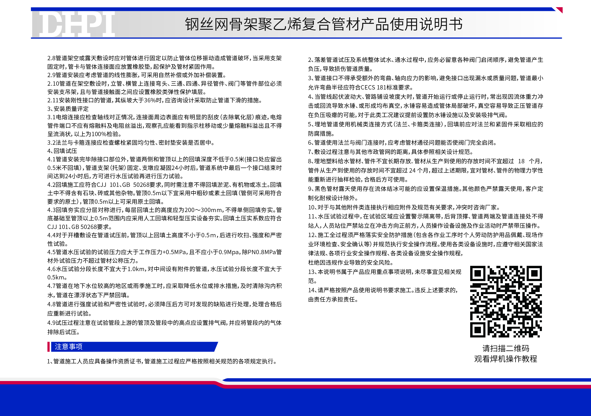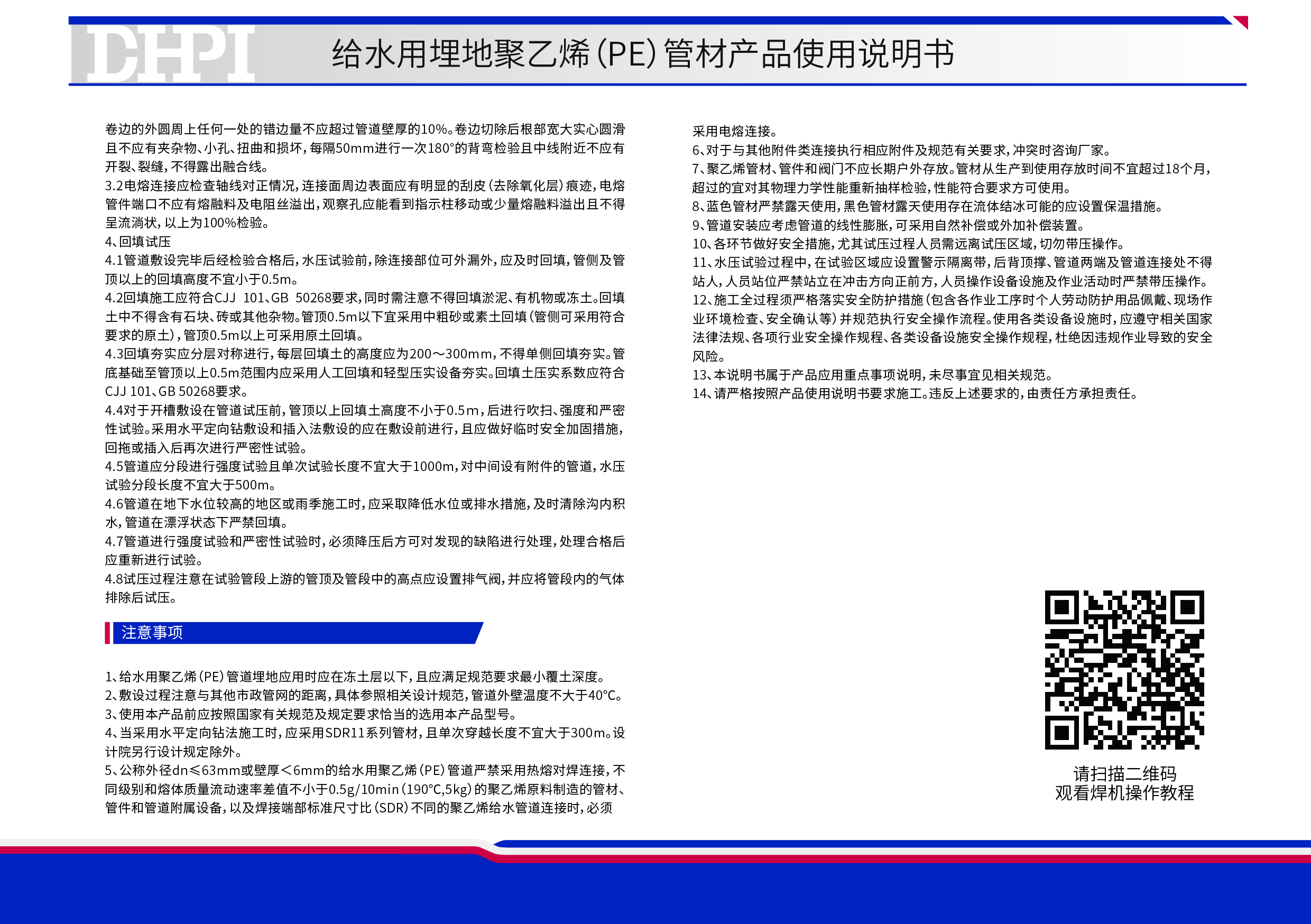 給水用埋地聚乙烯(PE)管材產品使用說明書