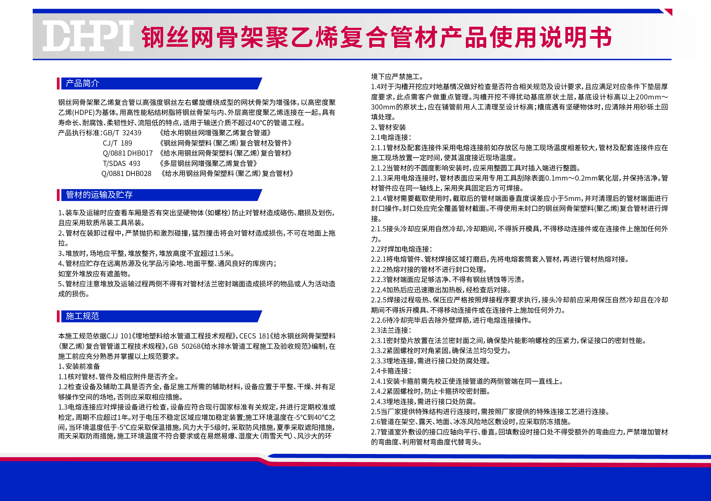 鋼絲網骨架聚乙烯復合管材產品使用說明書