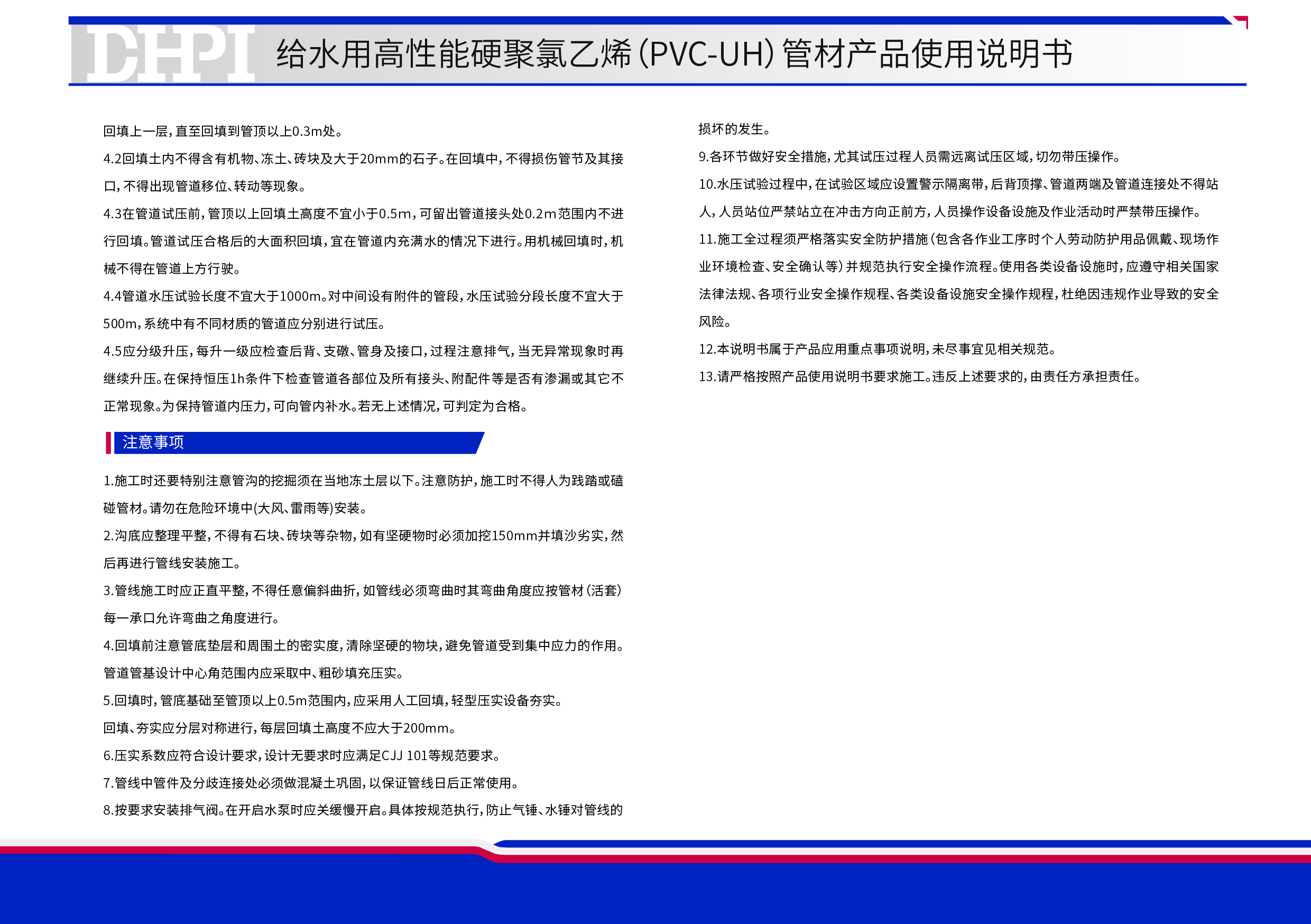給水用高性能硬聚氯乙烯(PVC-UH)管材產品使用說明書