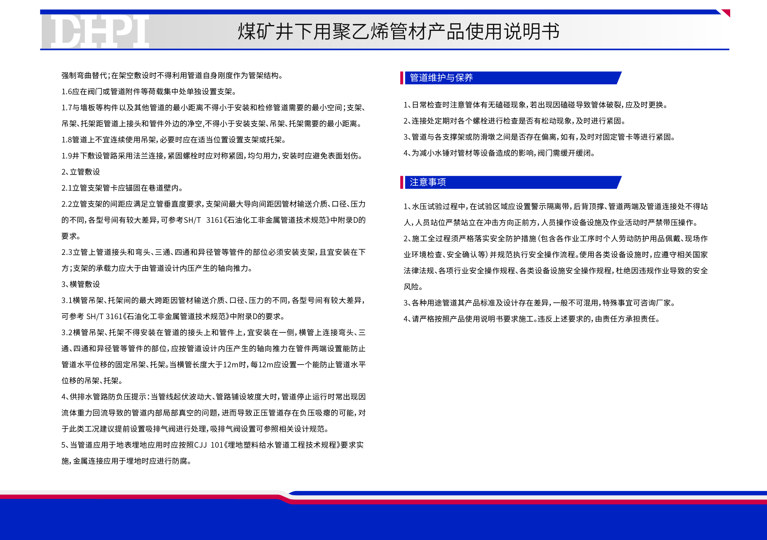 煤礦井下用聚乙烯管材產品使用說明書